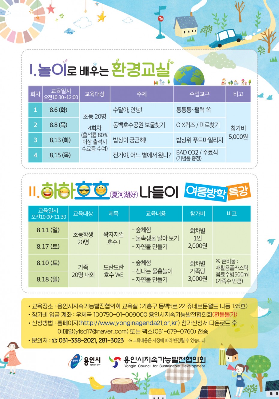 1. 놀이로 배우는 환경교실, 2. 하하호호 나들이 여름방학 특강