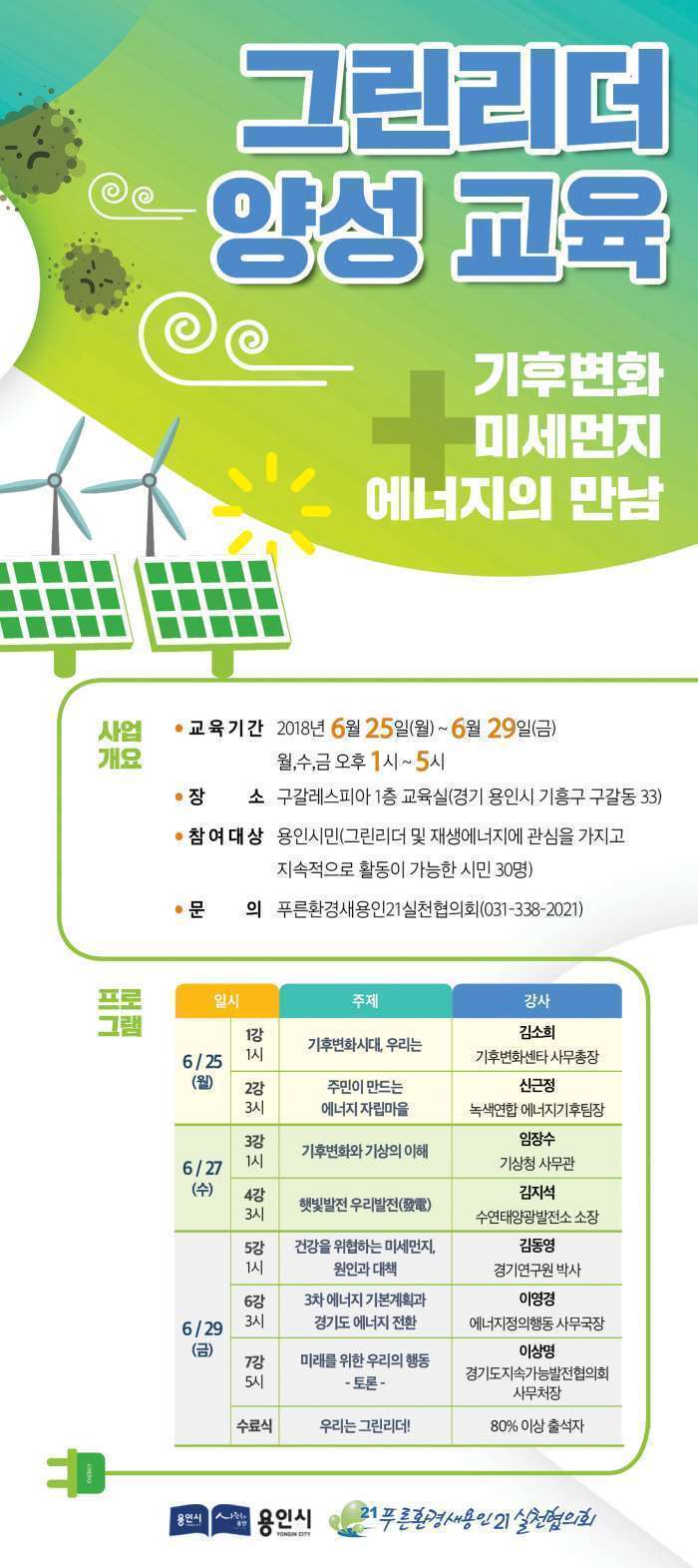 *참여대상: 용인시민(그린리더 및 재생에너지에 관심을 가지고 지속적으로 활동이 가능한 시민 30명)