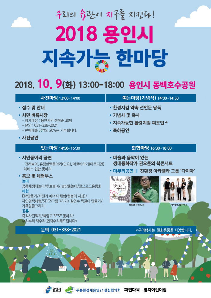 ※ 10월06일(토) 진행될 2018 용인시 지속가능한마당 행사 일자가 기상악화로 인하여 변경되었습니다.