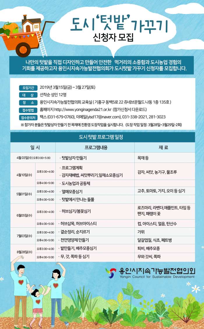 ◈ 용인시지속가능발전협의회 에서 도시 텃밭 가꾸기 신청자를 모집하고 있습니다. 많은 관심과 참여 부탁드립니다.